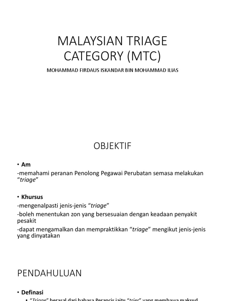 Malaysian Triage Category 2017 - See methodology for more detail.. Some malays define assimilation as learning the malay language. 7/23/2019 malaysian triage category (mtc) 1/25malaysian triagecategory (mtc)mohammad firdaus iskandar bin mohammad il7/23/2019 unable to walk but airway is secure, hemodynastable and on trolleys. Forever in the shadows 11. Gran premio de malaisia de 2017 (gl); The triage category is based on the severity of injury and the potential for salvage.