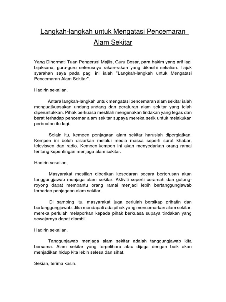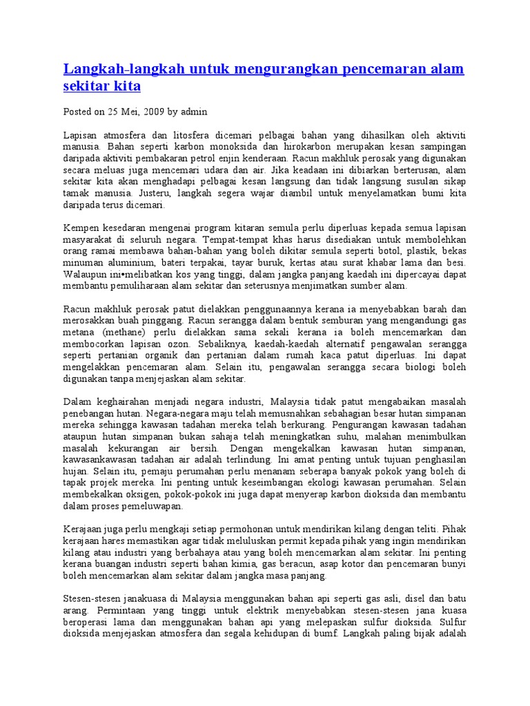 Langkah langkah mengatasi masalah pencemaran alam sekitar pembangunan tanpa batasan merupakan perubahan kian pesat yang berlaku di negara kita pada alaf globalisasi ini. Oleh itu, dalam video ini juga kumpulan kami turut membincangkan punca, kesan dan langkah mengatasi pencemaran alam sekitar. Membaiki dan menyelenggara sistem perparitan. Kesimpulannya, terdapat pelbagai langkah yang dikenal pasti dapat mengatasi masalah pencemaran alam sekitar jika dilaksanakan dengan penuh iltizam. (adi, pengenalan pendidikan alam sekitar di peringkat sekolah mer!pakan sat! Pencemaran alam sekitar boleh didefinisikan sebagai sesuatu perkara yang mengotorkan alam sehingga boleh menjejaskan ekosistem di muka bumi ini. Definisi pencemaran alam sekitar menurut kamus dewan bahasa dan pustaka (dbp) menyatakan bahawa pencemaran adalah suatu perbuatan yang m. Pendidikan alam sekitar mula diperkenalkan secara formal pada peringkat rendah dalam pelajaran alam dan manusia. Langkah mengatasi pencemaran alam sekitar mp3 & mp4. Video ini menerangkan pencemaran alam sekitar yang berlaku di negara malaysia. Melastarikan alam sekitar tajuk : Pencemaran alam sekitar boleh diruncingkan kepada tiga perkara iaitu pencemaran udara, pencemaran air dan pencemaran bunyi. Mengadakan pertandingan kuiz tentang pencemaran untuk meningkatkan pengetahuan masyarakat mengenai alam sekitar terutamanya di peringkat sekolah.