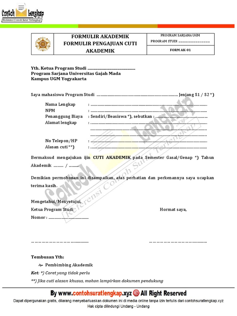 Surat rasmi memohon cuti tanpa gaji surasmi k.